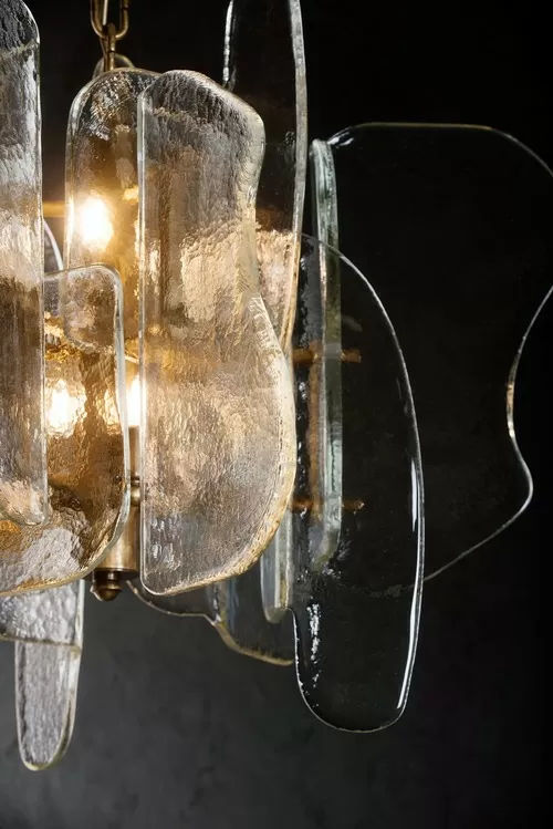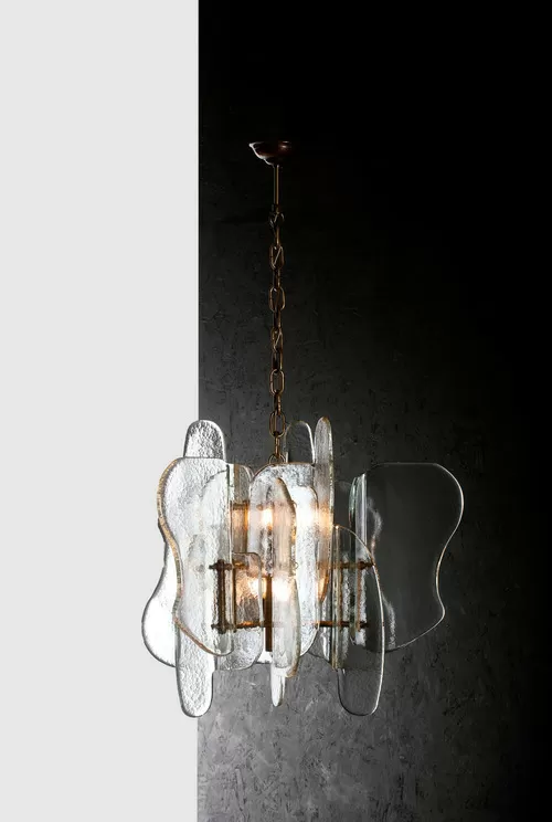 The glass cast and modeled in these forms that fit into each other, create a game where the light serves to enhance the purity of the glass.