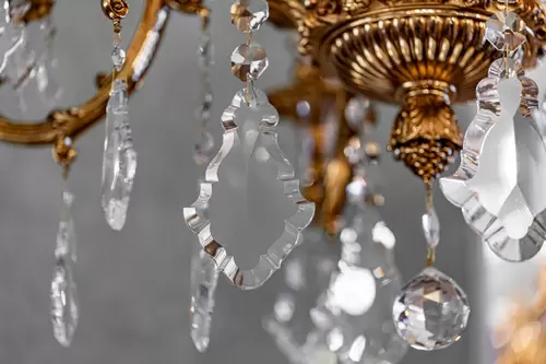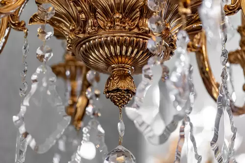 SATIN GOLD PLATED FINISH CHANDELIER WITH SCHOELER CRISTALS