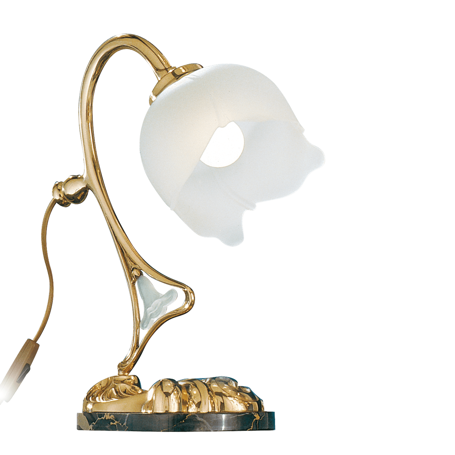 Elegant collection composed of chandeliers, wall lamps and table lamps in Liberty style made of brass in polished brass finish with satin glass diffusers and small decorative flower-shaped elements inserted in the arms. Customizable in finishes.