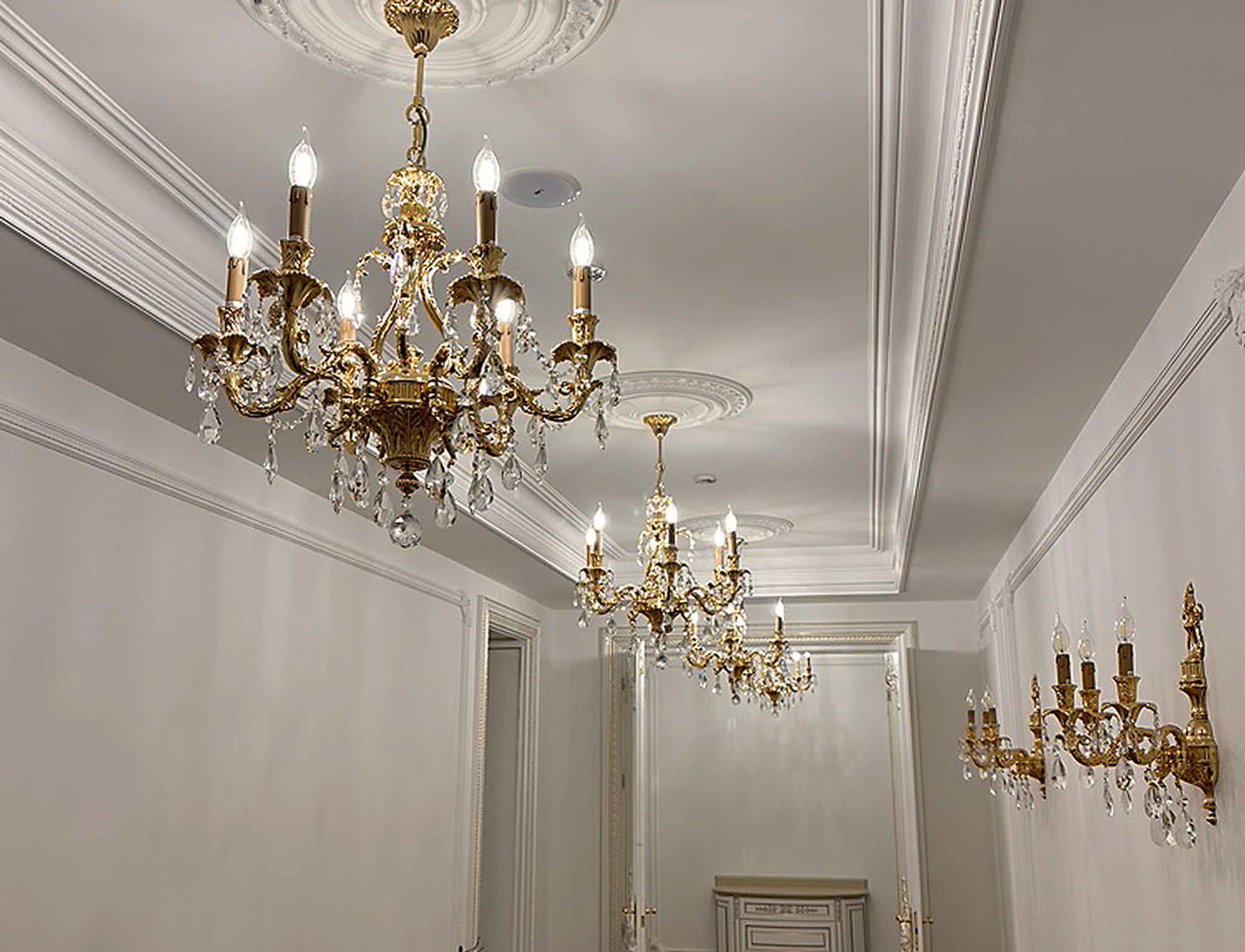 In questo progetto dedicato a due residenze private di prestigio, l’illuminazione decorativa diventa protagonista di un percorso architettonico elegante e armonico. Le nostre collezioni, realizzate a mano in Italia e completamente personalizzate, valorizzano gli spazi con finiture in Oro Zecchino e dettagli artigianali che confermano l’eccellenza del design classico di alta gamma.