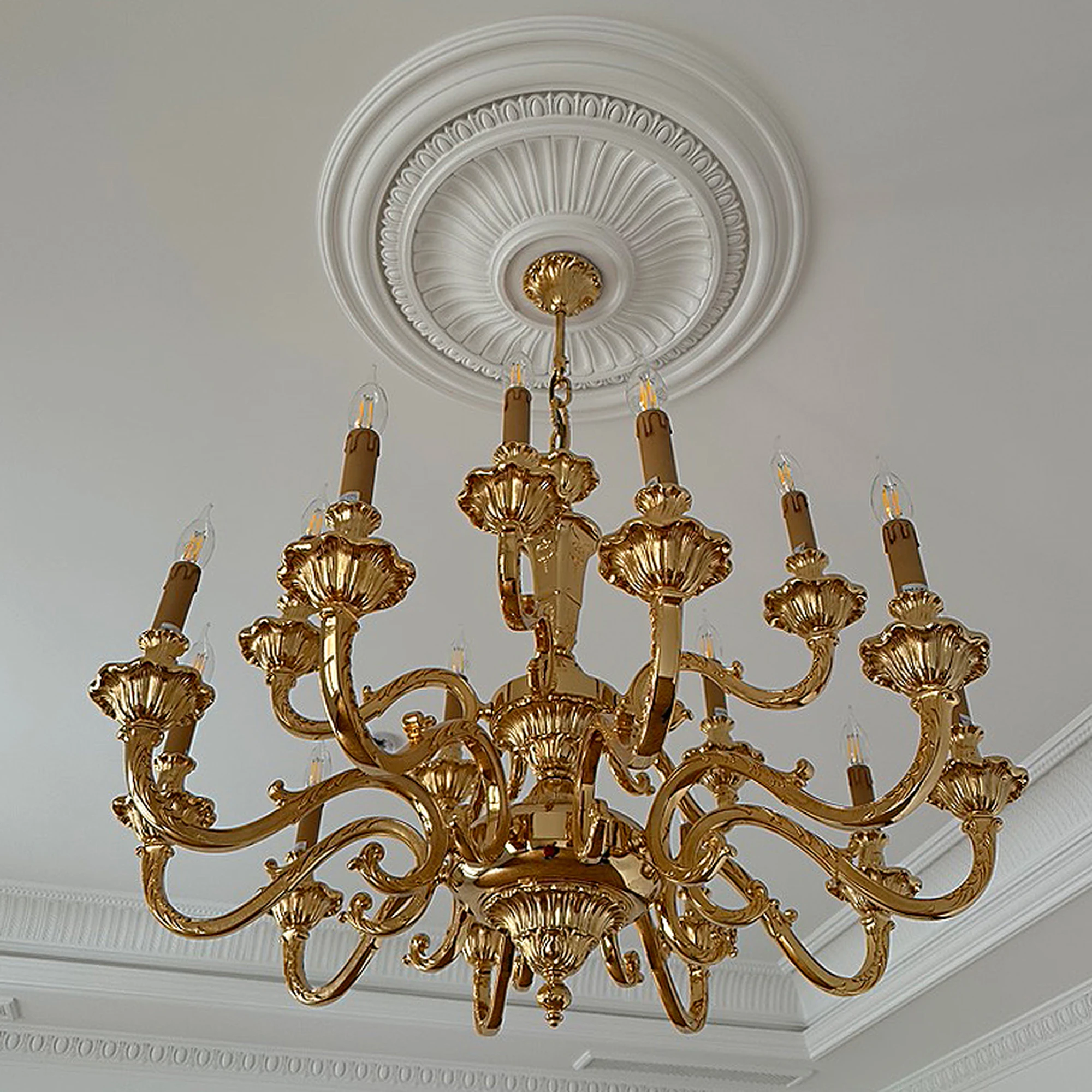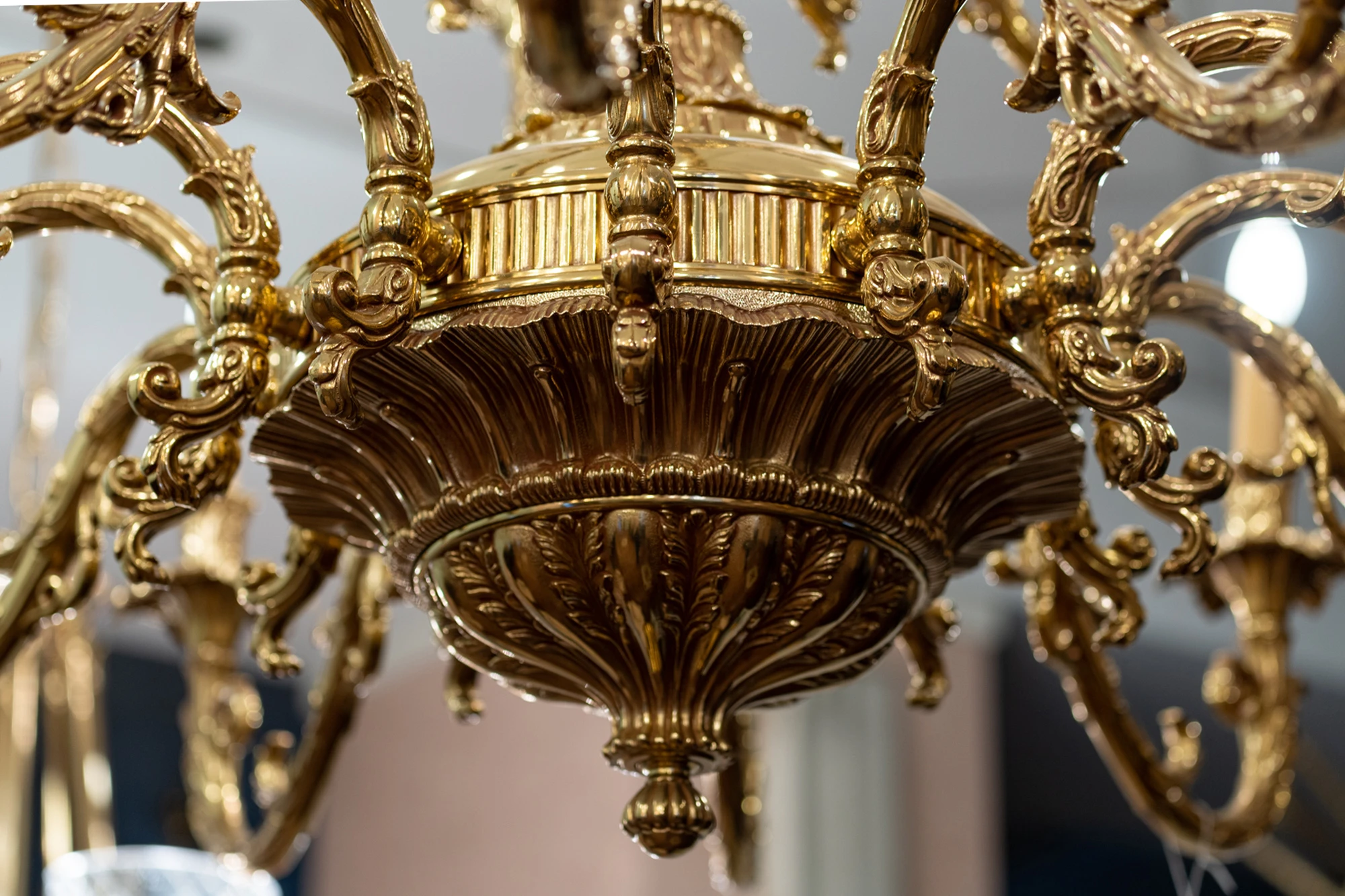 Tutte le collezioni selezionate sono realizzate in ottone massiccio e rifinite con finitura personalizzata in Oro Zecchino, lavorate secondo i metodi tradizionali dei nostri maestri artigiani. Una cura che si percepisce nelle superfici, nei volumi, nelle lavorazioni ornamentali e nelle proporzioni, restituendo un’illuminazione che non è solo funzionale, ma anche un elemento decorativo distintivo.