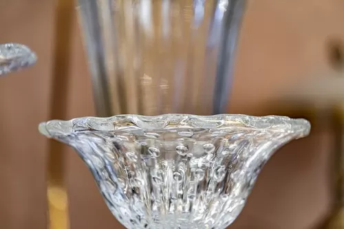 La Collezione Charlotte disponibile in diverse finiture si distingue per la particolarità del suo cristallo: bolle e pagliuzze dorate che riprendono il colore del metallo e lo rendono unico nel suo genere. Le sospensioni possono essere accompagnate da applique, lampade e lumi da tavolo per un arredamento di classe completo. i paralumi sono in seta color avorio.