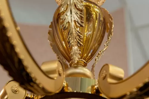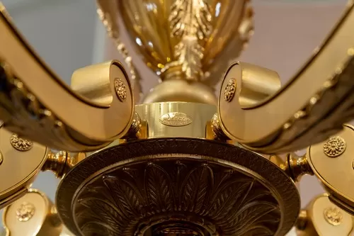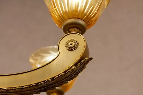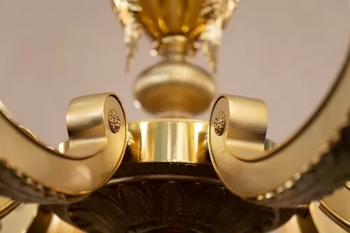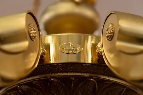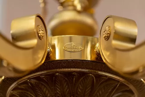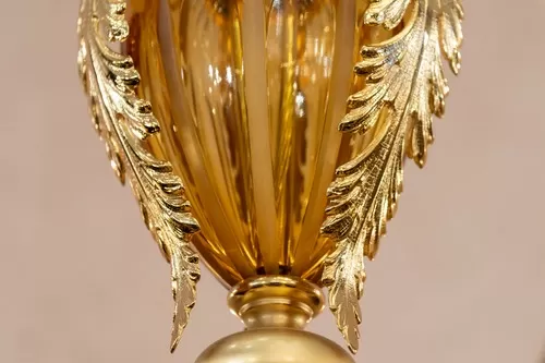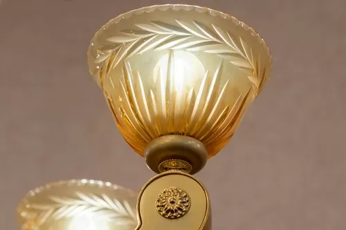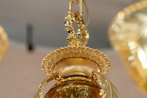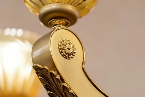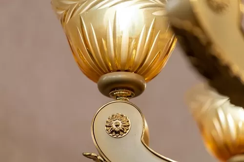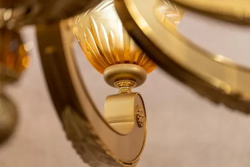 Lampadario oro zecchino sabbiato con cristallo ambra
