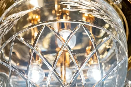 Plafoniera oro zecchino sfumato cristallo ambra e gocce Schoeler