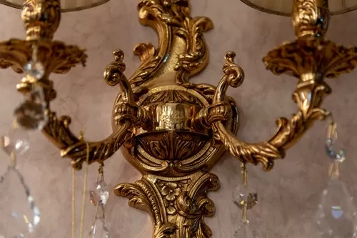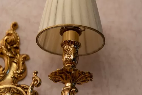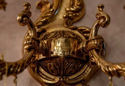 Applique oro zecchino sfumato con placche Schoeler e paralalumi organza