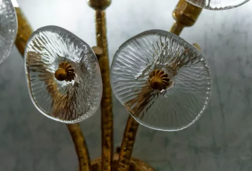 Цветущий луг вдохновил дизайнера на создание этой впечатляющей коллекции, где кованое стекло, как настоящий цветок, украшает структуру из латуни. Здесь модель представлена в потолочных и настенных версиях, но она также подходит для адаптации к самым различным потребностям освещения. Отделка выполнена из натуральной латуни, но может быть изменена по желанию клиента.