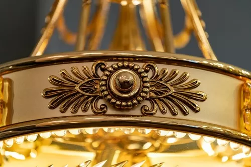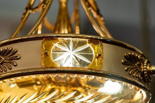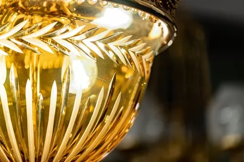 Коллекция Amber отличается красивым резным хрусталем. Чашки и детали интенсивного янтарного цвета великолепно сочетаются с латунью в старинном чистом золоте. Идеально подходит для комплектации классического и роскошного, но всегда актуального интерьера. Модели из коллекции 431 поставляются с кремовыми плиссированными абажурами из органзы.