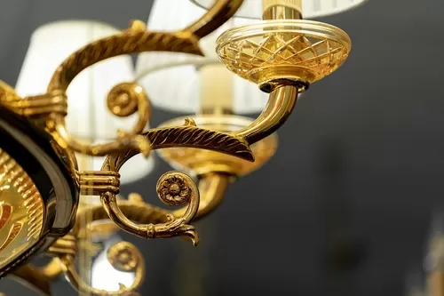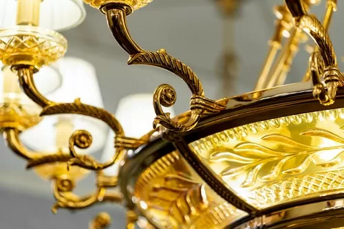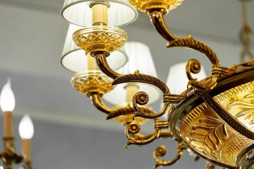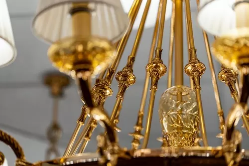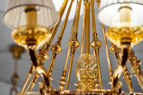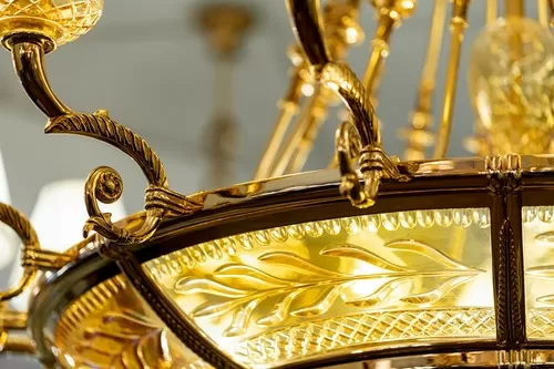 Michelangelo - самая стильная и роскошная версия коллекции Raffaello. Хрустальные чаши ручной работы в янтарном или синем/янтарном цветах. Рожки оформлены абажурами из плиссированной органзы в нежном цвете слоновой кости. Элегантная отделка латунных деталей выполнена в цвете старинного чистого золота. Люстры, бра и настольная лампа дополняют коллекцию. Отделка по запросу клиента.