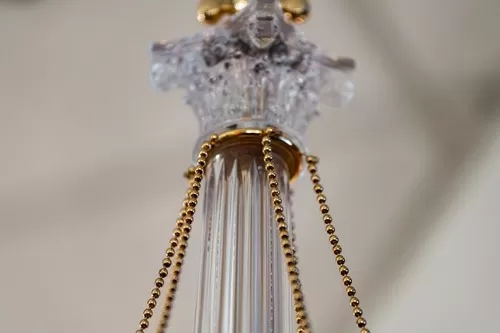 Эта изысканная и элегантная коллекция люстр, бра, настольных ламп и торшеров идеально сочетает в себе тонкую латунь и хрусталь с изящными формами. Абажуры, которые дополняют его, могут быть в кремовой органзе или в шаньтунге. Отделка и размеры по запросу клиента.